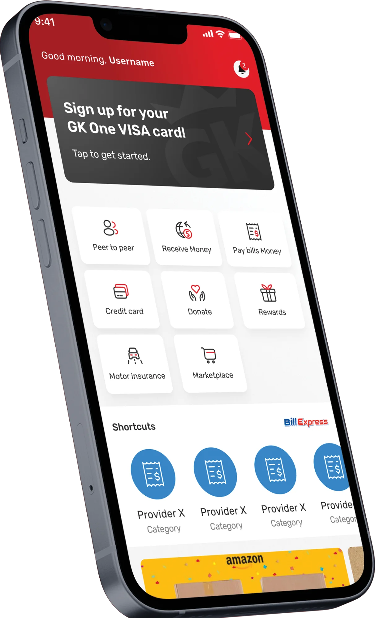 Whether you're receiving money, managing your digital wallet, paying your bills online, applying for credit cards, or purchasing insurance, the GK One app is designed to simplify your life. No more waiting in lines or juggling multiple apps. With GK One, everything you need is just a tap away.