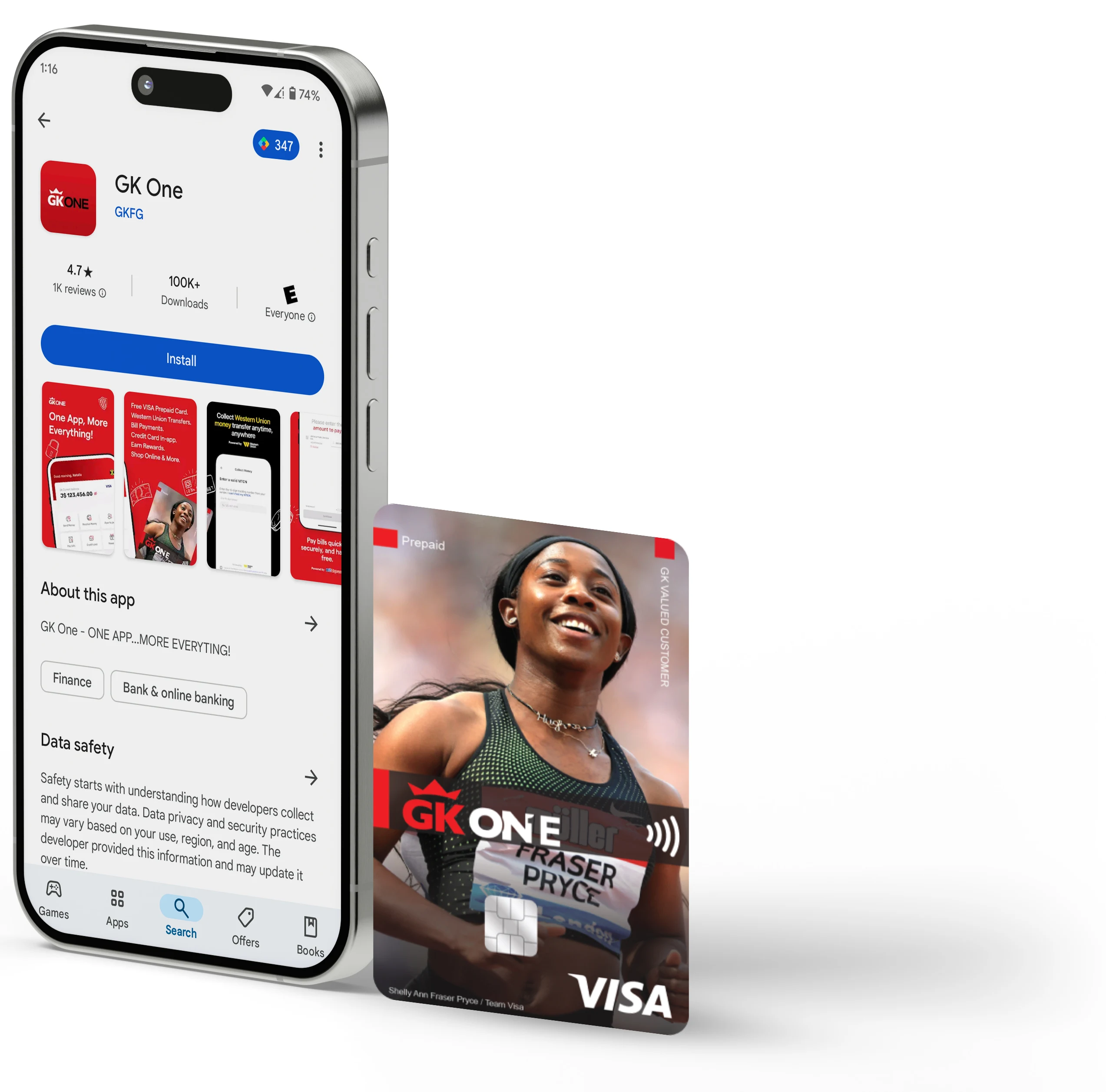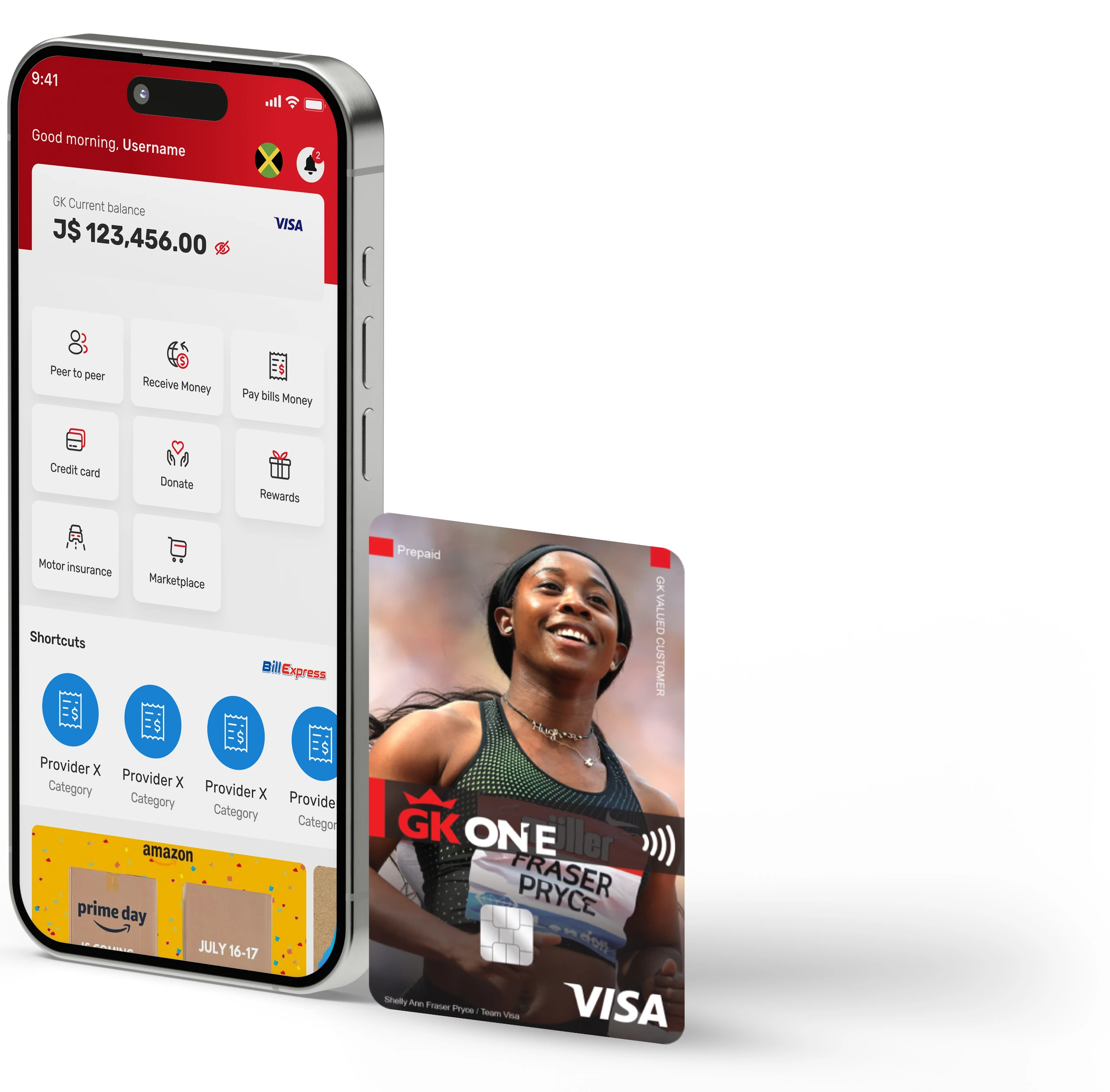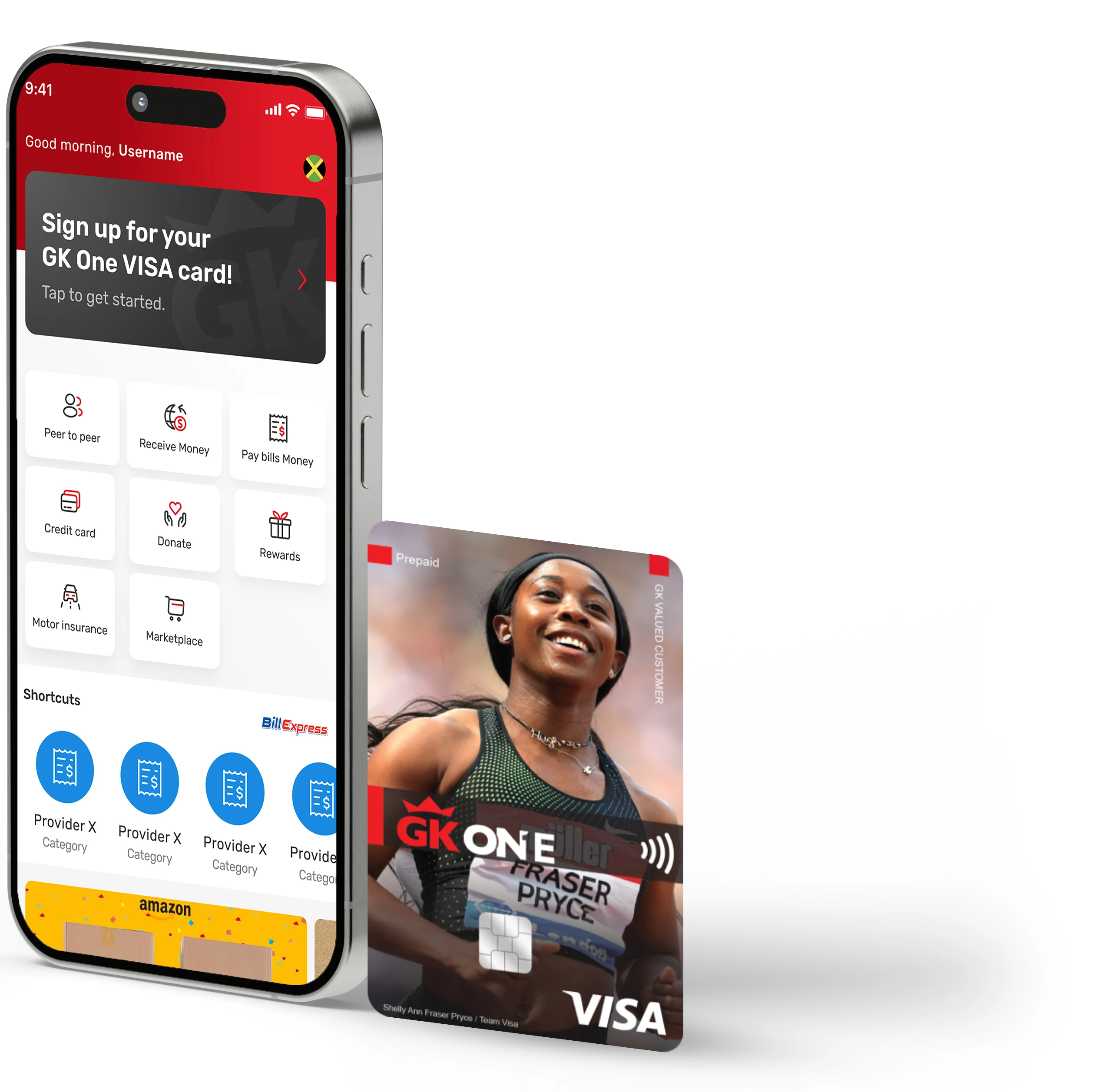 The GK One Prepaid Visa Card offers a seamless, accessible payment solution for managing everyday expenses, shopping online & even paying bills. Enjoy cashless payments or withdraw at over 600 ATMs islandwide. Designed to fit your lifestyle, it’s the card that gives you more control, more access, and more possibilities.
