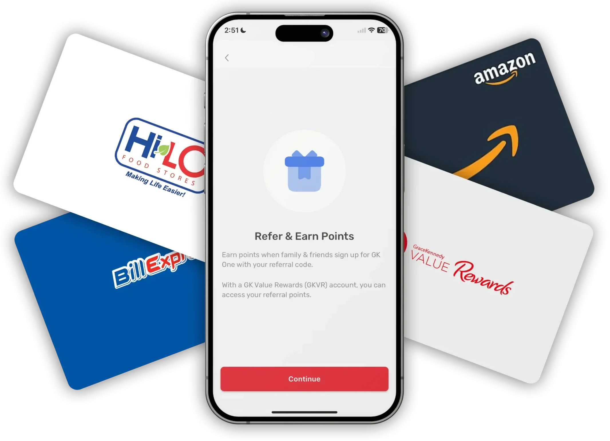 The more you share, the more you earn! Invite your friends to join GK One and receive GK Value Rewards Points with each successful referral. Redeem today